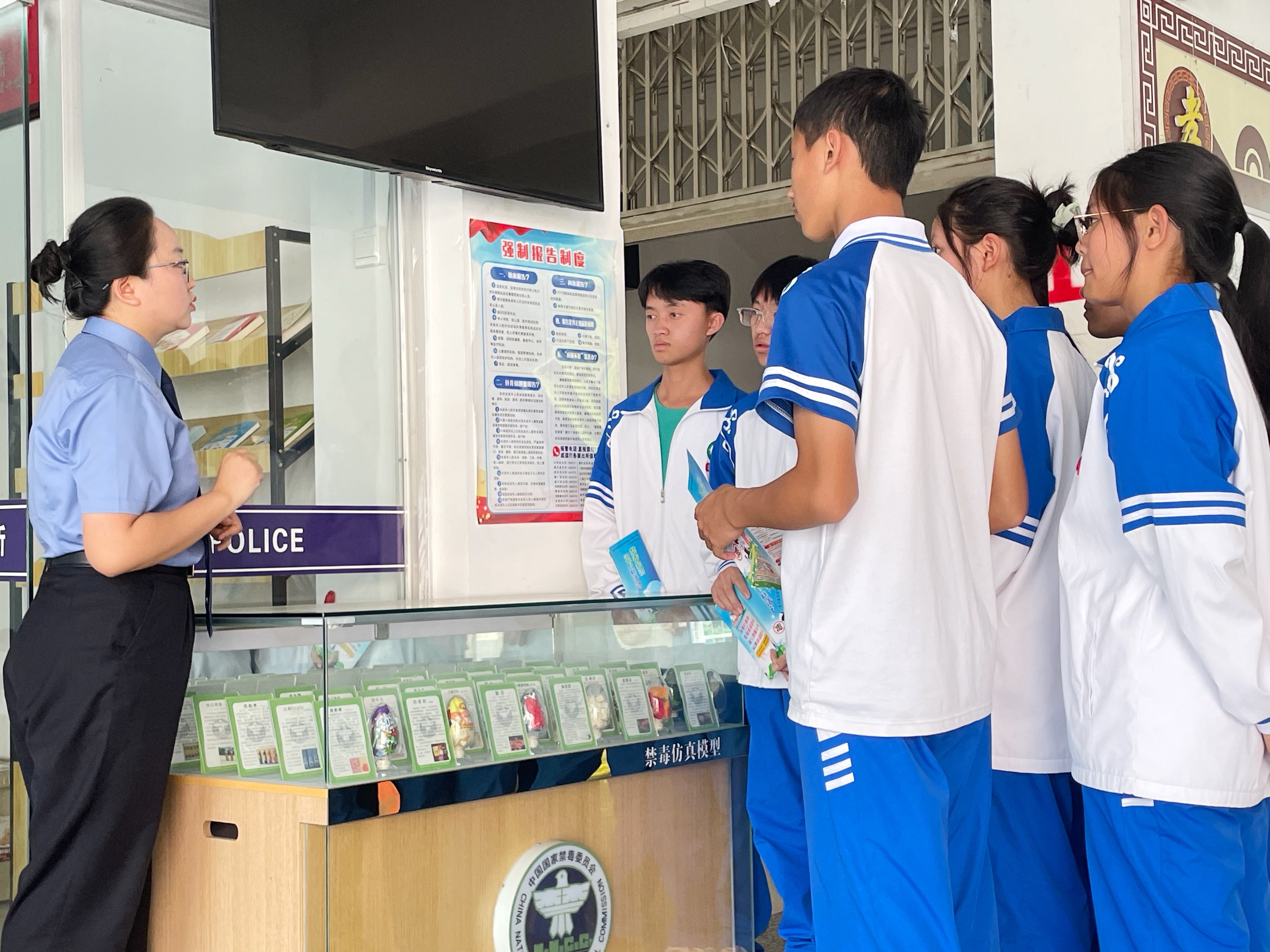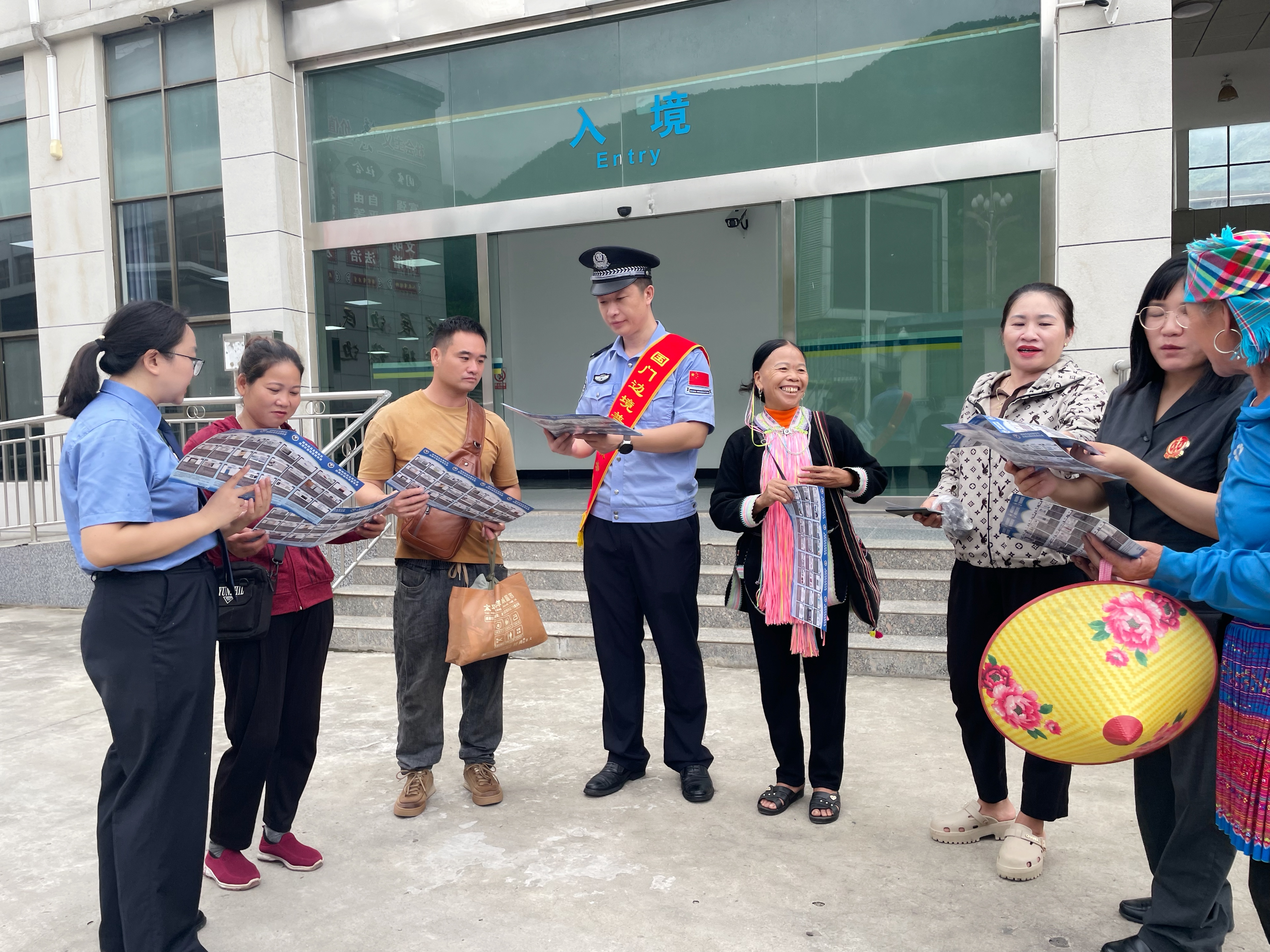 庭审结束后,检察干警前往金水河口岸联合相关部门开展禁毒宣传工作,向出入境的旅客发放禁毒宣传册,讲解麻精药品等成瘾性物质的种类及滥用的危害,积极带动群众、旅客参与禁毒活动,共同维护边境安全防线。