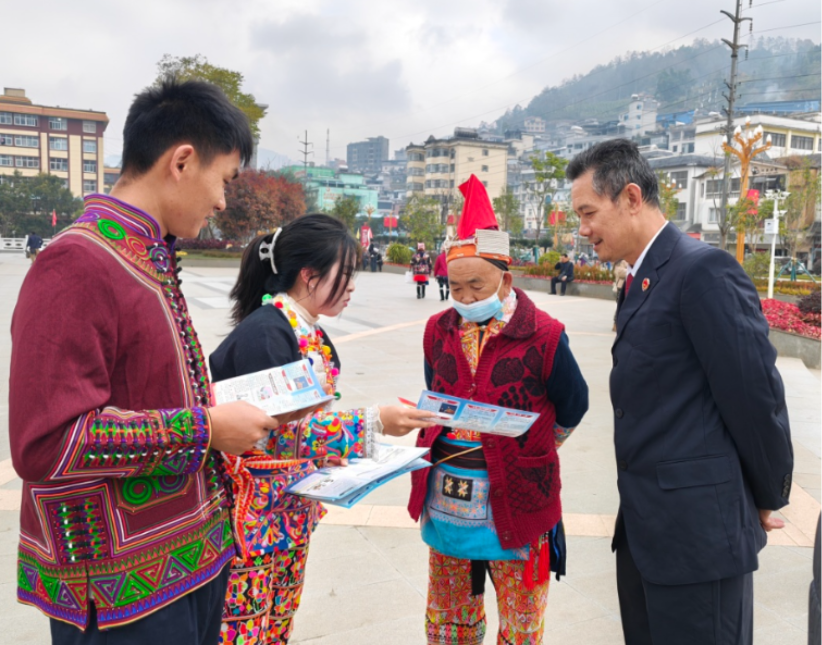 双语检察干警深入街道社区,开展普法宣传活动。干警们采用汉语+民族语双语模式,围绕防范电信诈骗、未成年人保护等群众关切,通过案例讲解、法律咨询、发放宣传手册等形式,精准传递法治声音,有效提升了普法覆盖面和实效性。