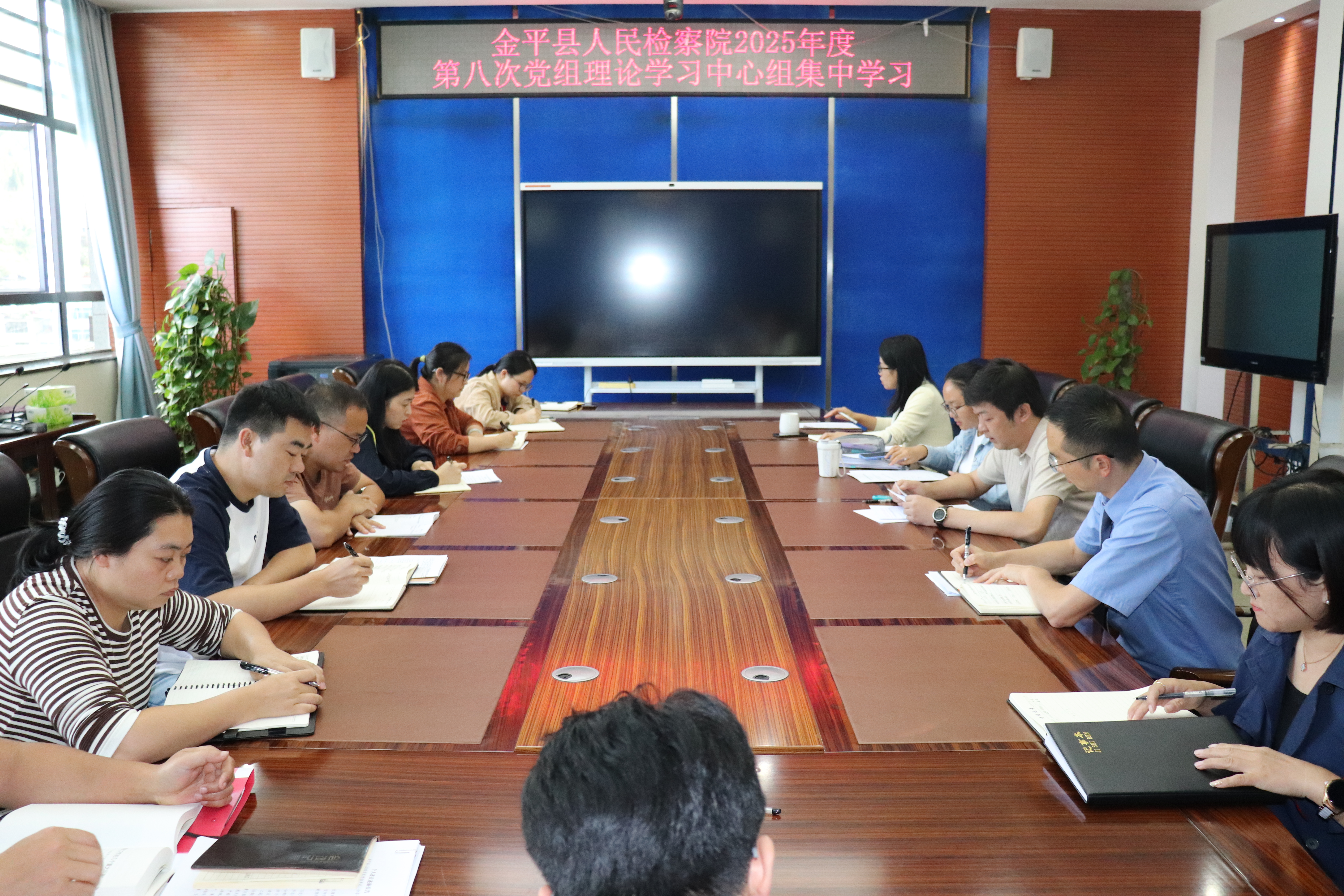 擦亮政治忠诚底色。认真学习贯彻《中国共产党政法工作条例》,党组成员共围绕党的二十大和二十届历次全会精神等重要内容开展理论宣讲7次,不断增强思想政治武装。全面落实意识形态工作责任制,召开2次党组会分析研判检察工作中存在的风险隐患,提高风险防范意识。严格执行“三审三校”制度,落实“三同步”工作机制,使用微信公众号平台发布信息372条,记录金平检察法治作为。